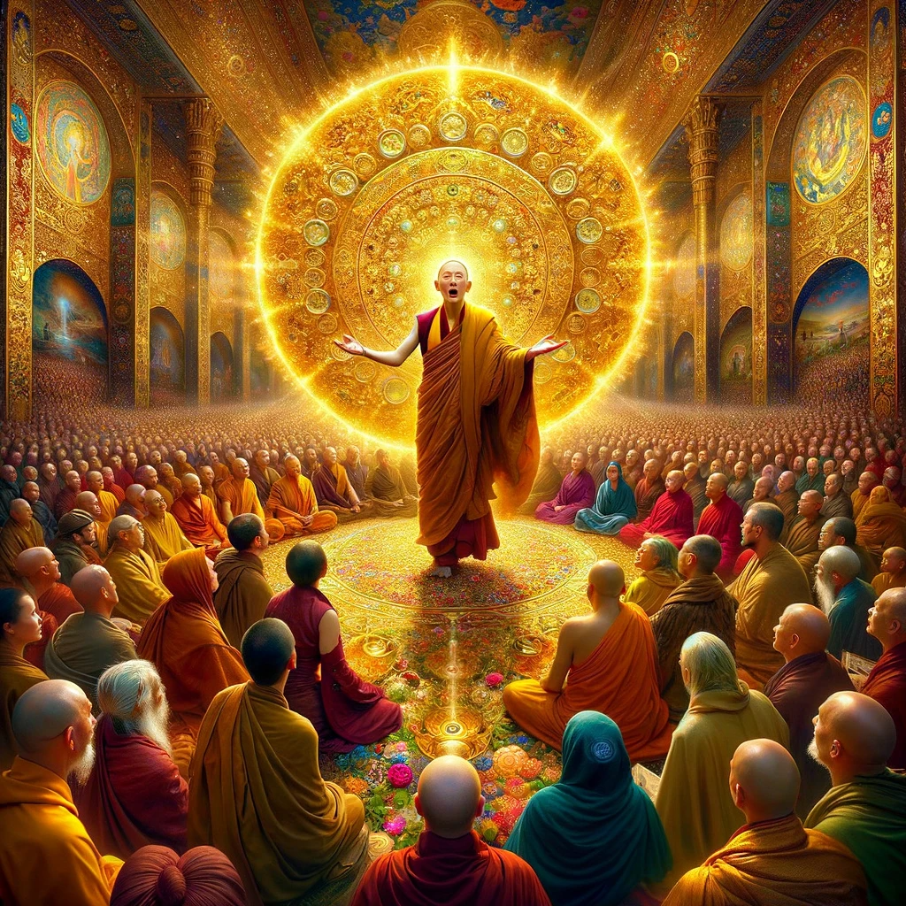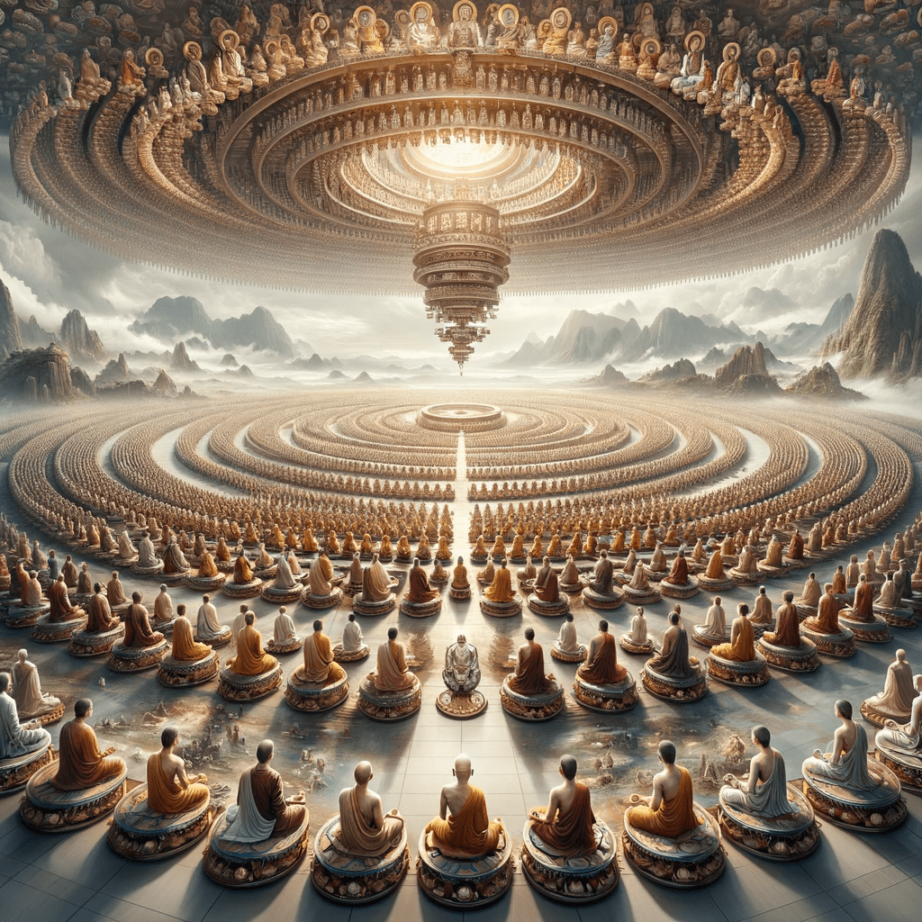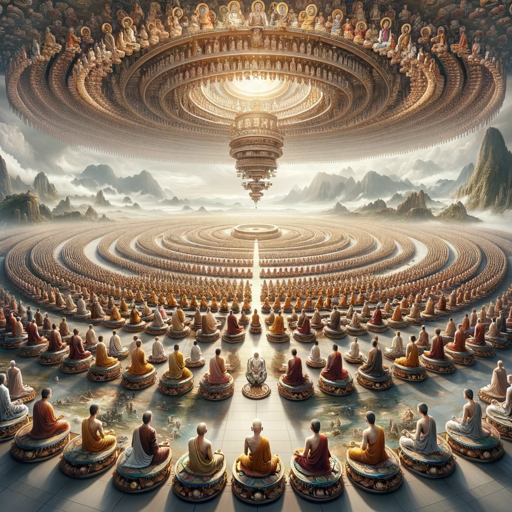 Understanding the thoughts burgeoning in the minds of his senior disciples, the Master once more spoke to the gathered monks: This eminent disciple of mine, monks, the senior Subhuti, will also embark on a spiritual journey. He will pay homage to countless Buddhas, numbering into the trillions; he will show them respect, honor, reverence, veneration, and devotion. Under their guidance, he will lead a spiritual life and attain enlightenment. After fulfilling these duties, in his final earthly existence, he will become a Tathagata, an enlightened one known as ‘Sasiketu,’ which translates to ‘Moon Signal.’