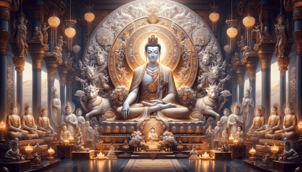 The Buddha-land at that time would be breathtaking, filled with divine beauty and without any suffering. Beings would live spiritually, possessing ideal, gold-colored bodies, and adorned with the great man’s thirty-two characteristics. They would feed upon the delight in the law and meditation, surrounded by innumerable Bodhisattvas, endowed with transcendent wisdom and capable of instructing creatures.