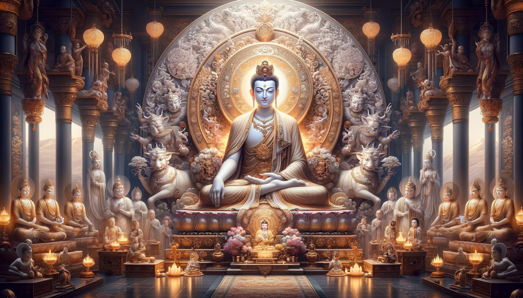 Upon hearing the Lord’s display of wisdom and his mysterious instruction about the future destinies of the great Disciples, Purna, son of Maitrayani, felt wonder and awe. He was thrilled, filled with pure-hearted delight and joy. Rising from his seat, he prostrated himself before the Lord’s feet and reflected on the remarkable teachings he had received.