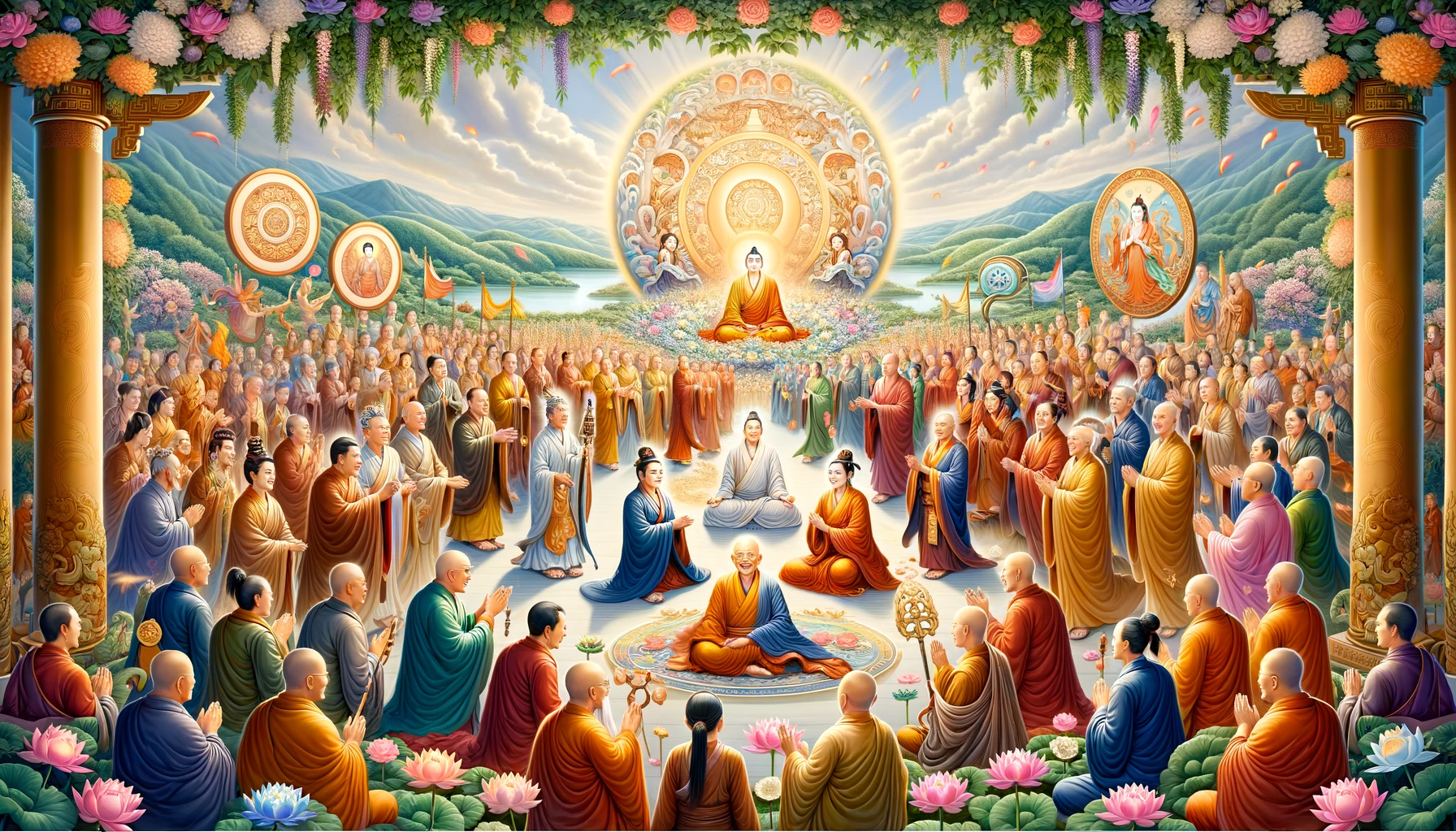 He marveled at how the Tathagatas (enlightened beings) skillfully conformed to this multifaceted world and preached the law with grace and wisdom. Purna knew that only the Tathagata understood his ancient path and inclinations. After paying his respects, he stood aside, his eyes fixed on the Lord, showing his deep reverence.