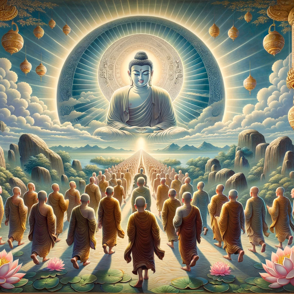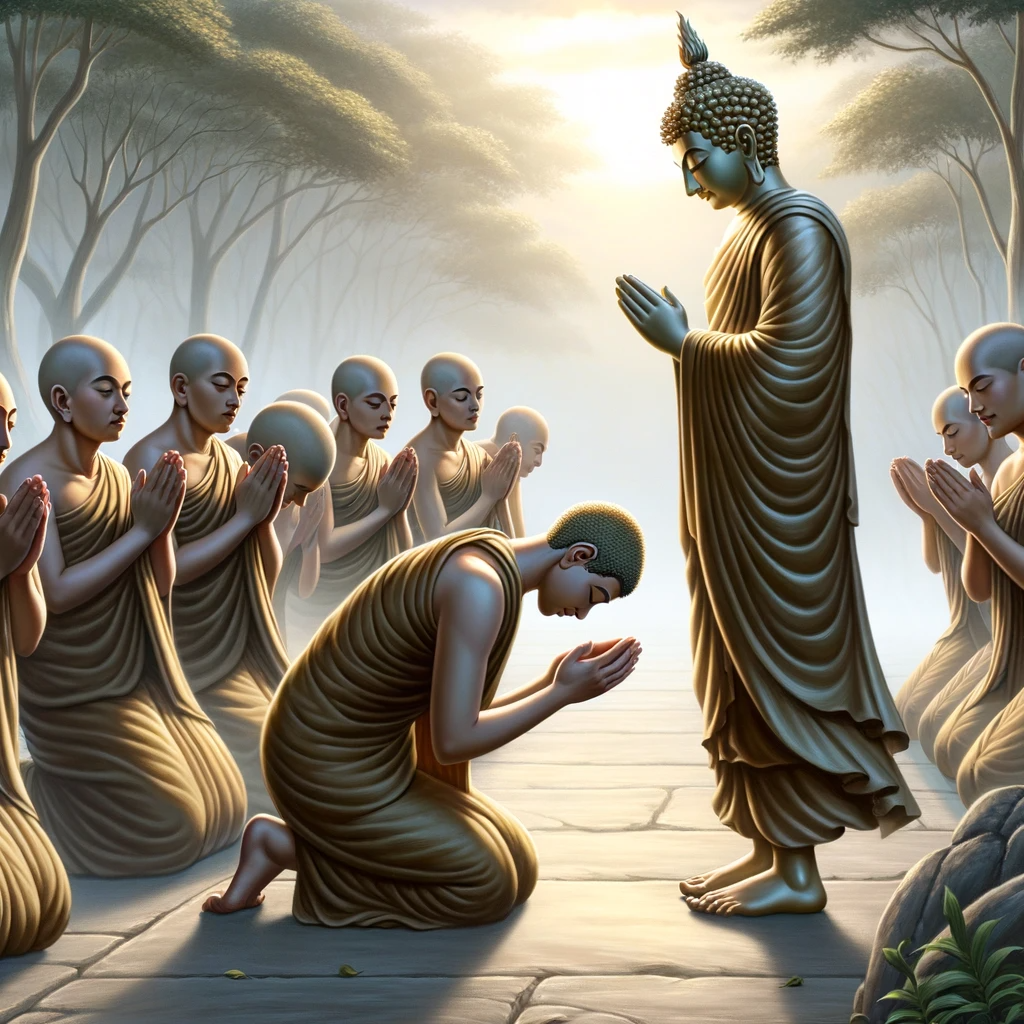 Upon hearing the Lord’s proclamation of their future destiny, the five hundred enlightened disciples (Arhats) were filled with contentment, joy, and delight. They approached the Lord’s place of sitting, humbly bowed to his feet, and confessed:”We acknowledge our mistake, O Lord. We believed we had reached the ultimate state of Nirvana, but we were mistaken. Though we should have strived for a deeper understanding of your wisdom, we settled for mere superficial knowledge.
