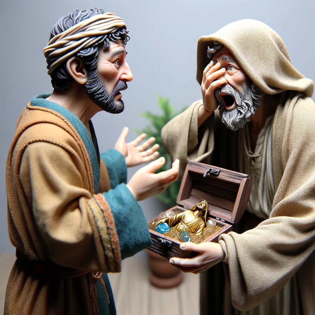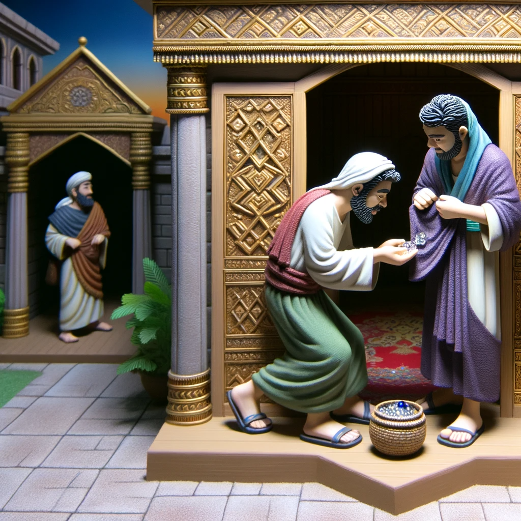 The situation is like a man visiting a friend’s house. While there, he becomes drunk or falls asleep. His friend, wishing to gift him a priceless gem, secretly ties it within his garment. Later, the man leaves and faces many hardships in another country, struggling for basic necessities like food and clothing. He remains unaware of the treasure hidden in his garment.