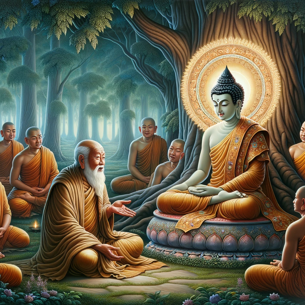 The Lord looked once more at those two thousand disciples, some still on their journey and others fully realized, all gazing up at him with calm, gentle, and peaceful minds. Then he spoke to the venerable Ānanda: “Do you see, Ānanda, these two thousand monks, some still learning and some who have arrived?” “I do, Lord; I do, Well-Gone One,” Ānanda replied.