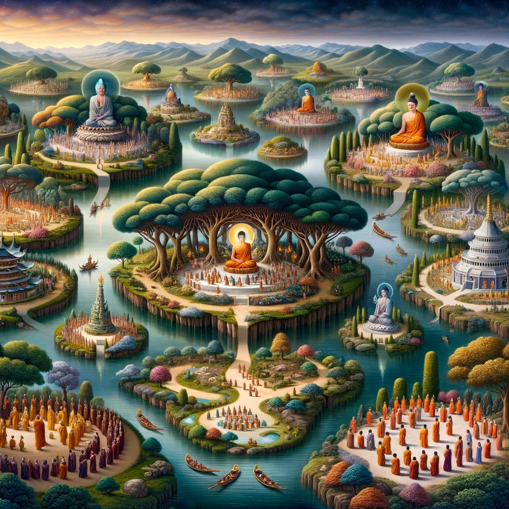 The Lord looked once more at those two thousand disciples, some still on their journey and others fully realized, all gazing up at him with calm, gentle, and peaceful minds. Then he spoke to the venerable Ānanda: “Do you see, Ānanda, these two thousand monks, some still learning and some who have arrived?” “I do, Lord; I do, Well-Gone One,” Ānanda replied.