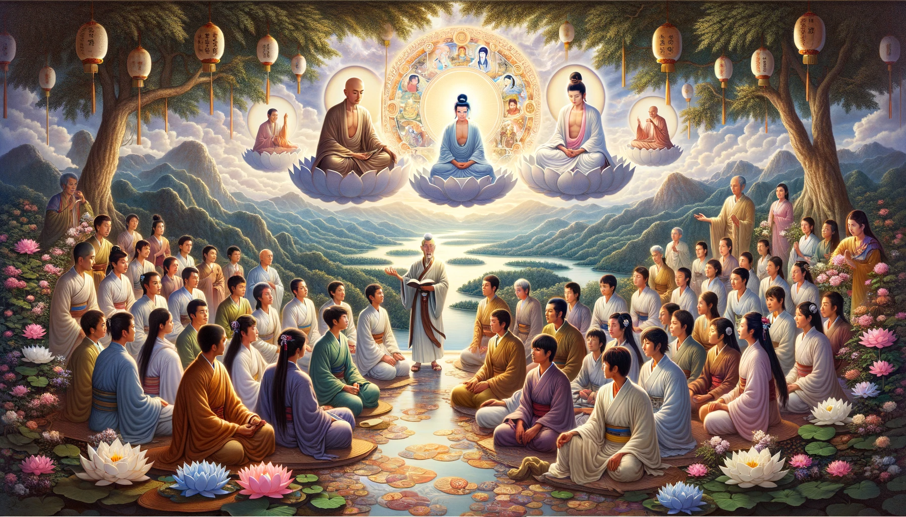 The Lord then spoke to the monks again, saying: Whoever in the future, whether young men or young women of good character, hears this chapter from the Lotus Sutra, and believes in its teachings, will be freed from uncertainty and doubt. Their minds will become pure, and they will fully trust these teachings. Such a person will be protected from the three worst fates: being reborn in hell, as an animal, or in the realm of the dead. Instead, they will be reborn in the blessed lands of the Buddhas, no matter where they are in the universe. In each new life, they will hear this very Sutra; if born as a god or human, they will hold a high position. And in the land of the Buddha where they are reborn, they will magically appear on a lotus flower made of precious jewels, coming face-to-face with the Enlightened One.
