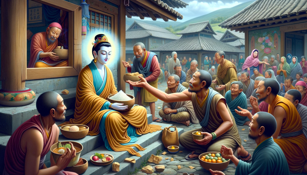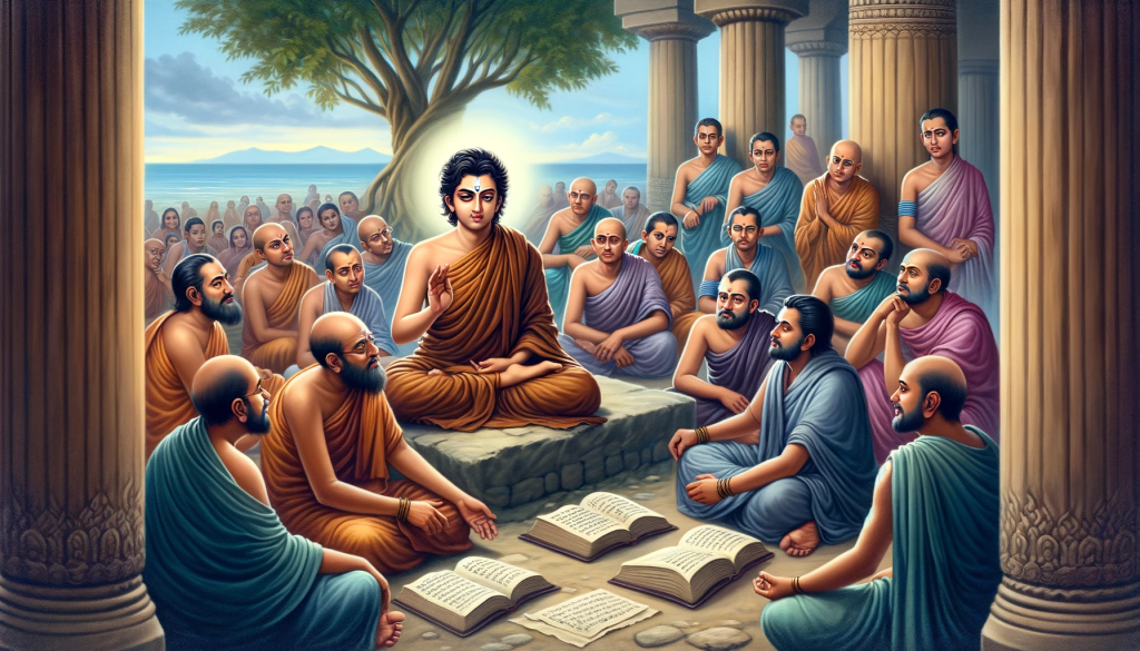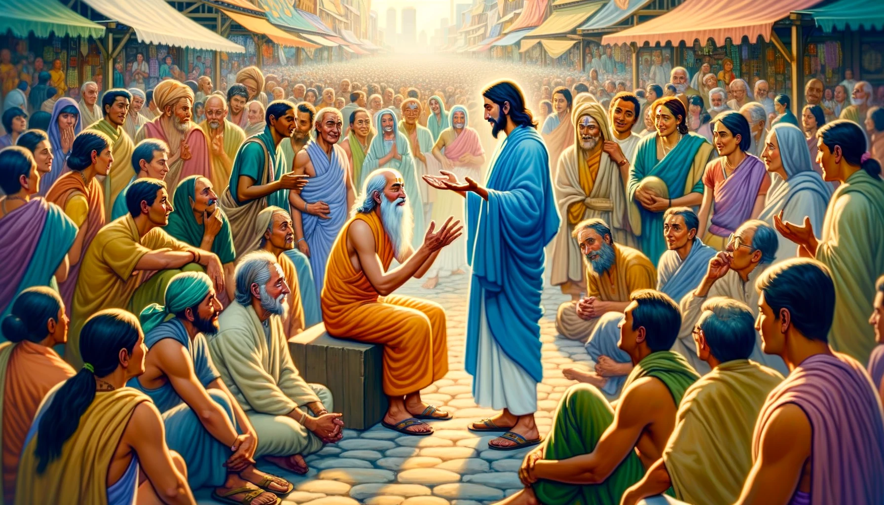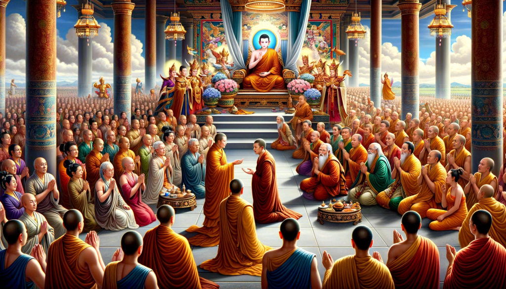 Just as the earthly king, impressed by the valor of his soldiers, eventually gives away even his crown jewel, so too does the Enlightened One, seeing the disciples and Great Spiritual Seekers (Bodhisattvas) battling against illusion and sinful inclinations, and witnessing them conquer hatred, greed, and ignorance, eventually share this unique and unparalleled teaching. He bestows upon them the noble crown jewel of wisdom, the most exalted understanding that leads to omniscience.