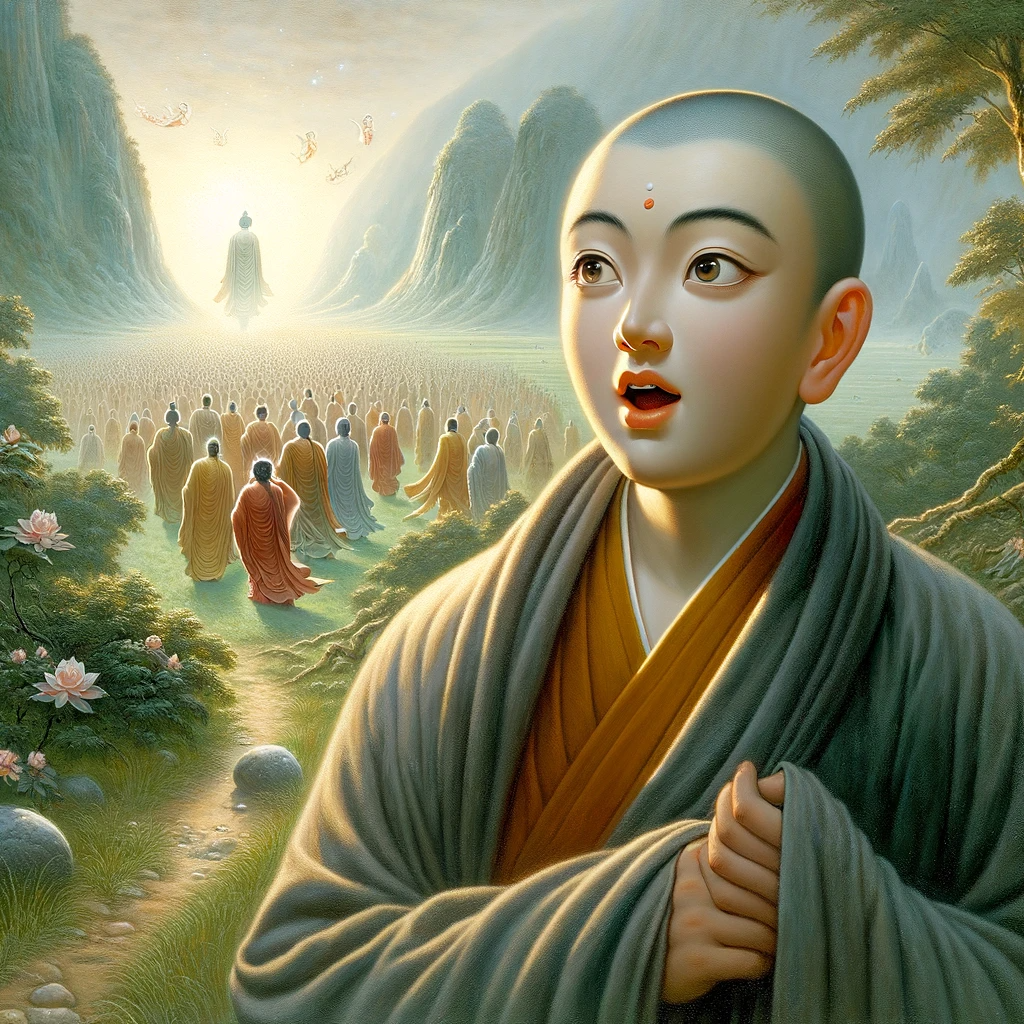 At that point, the Bodhisattva Mahāsattva Maitreya, sensing his own uncertainty and recognizing the same feeling among the countless Bodhisattvas, as numerous as the sands of the river Ganges, approached the Lord with hands joined in respect. Driven by his doubt and curiosity, he sought to question the Lord about the remarkable phenomenon he had witnessed.