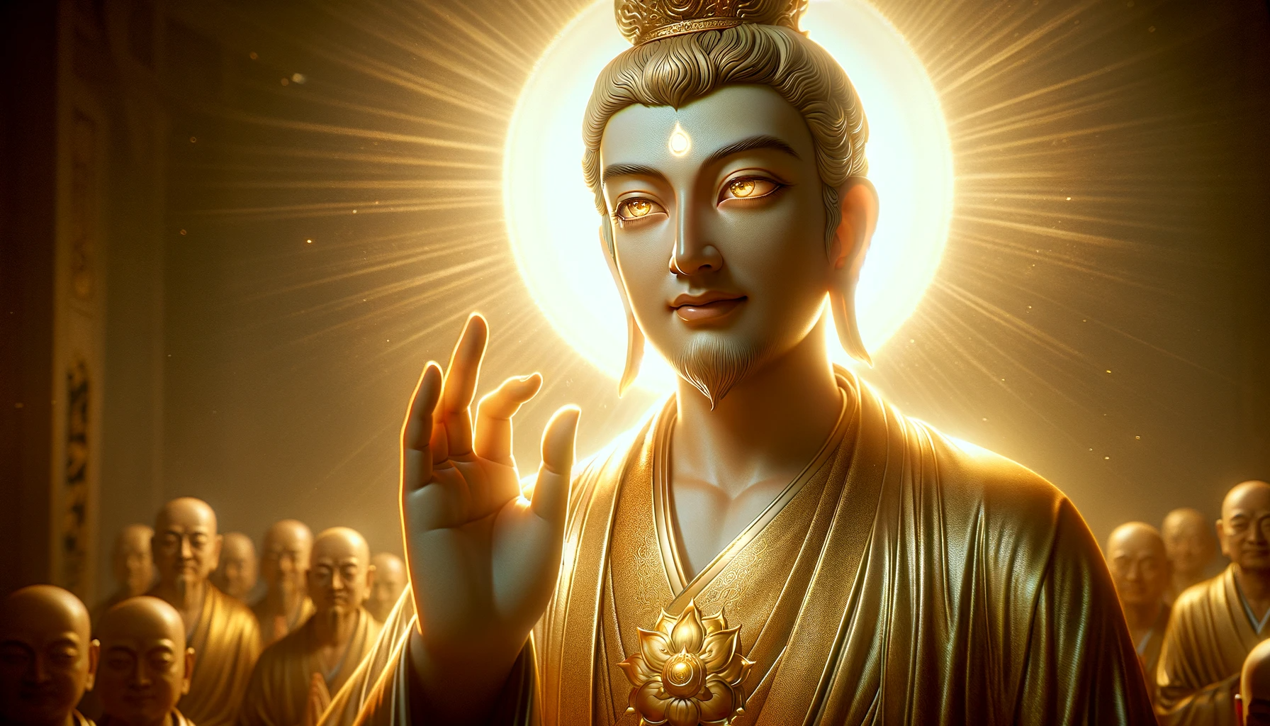 Serene sages preaching, radiant throng,