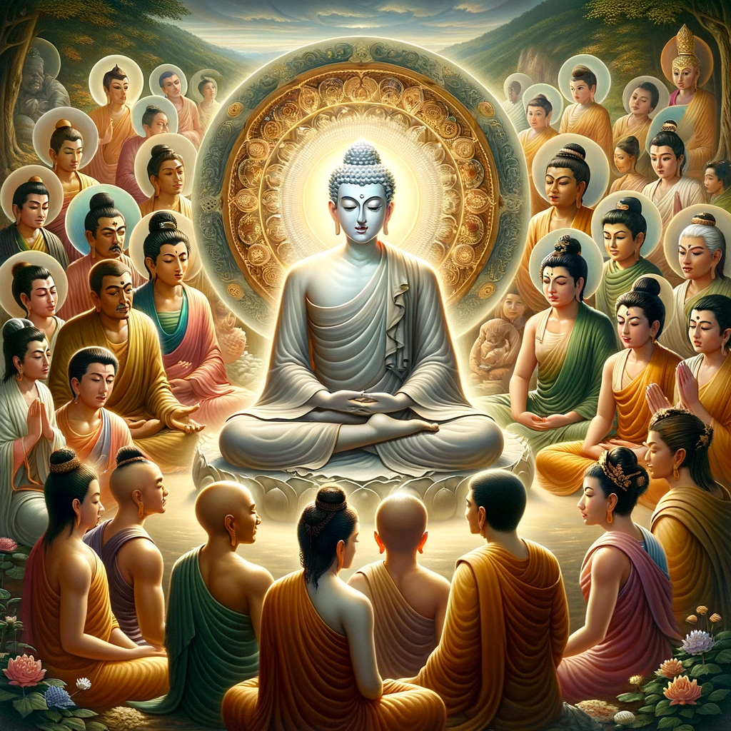 “How has it been possible for you to awaken and mature this immense multitude of Bodhisattvas for supreme, perfect enlightenment? Is a multitude so vast that counting them all would take countless eons? These Bodhisattvas, so numerous, O Lord, have been following a spiritual path for ages, planting the roots of goodness under many enlightened Buddhas, and becoming ripe over many eons.”