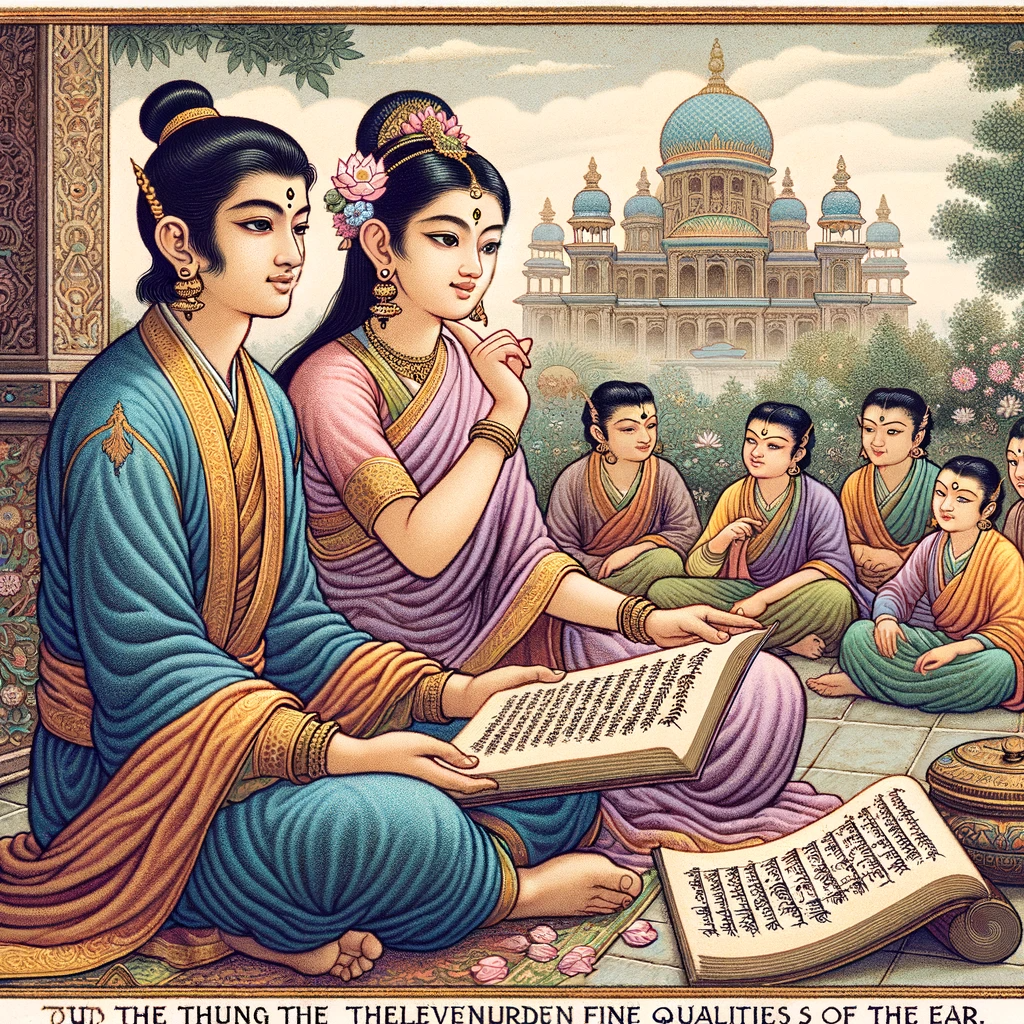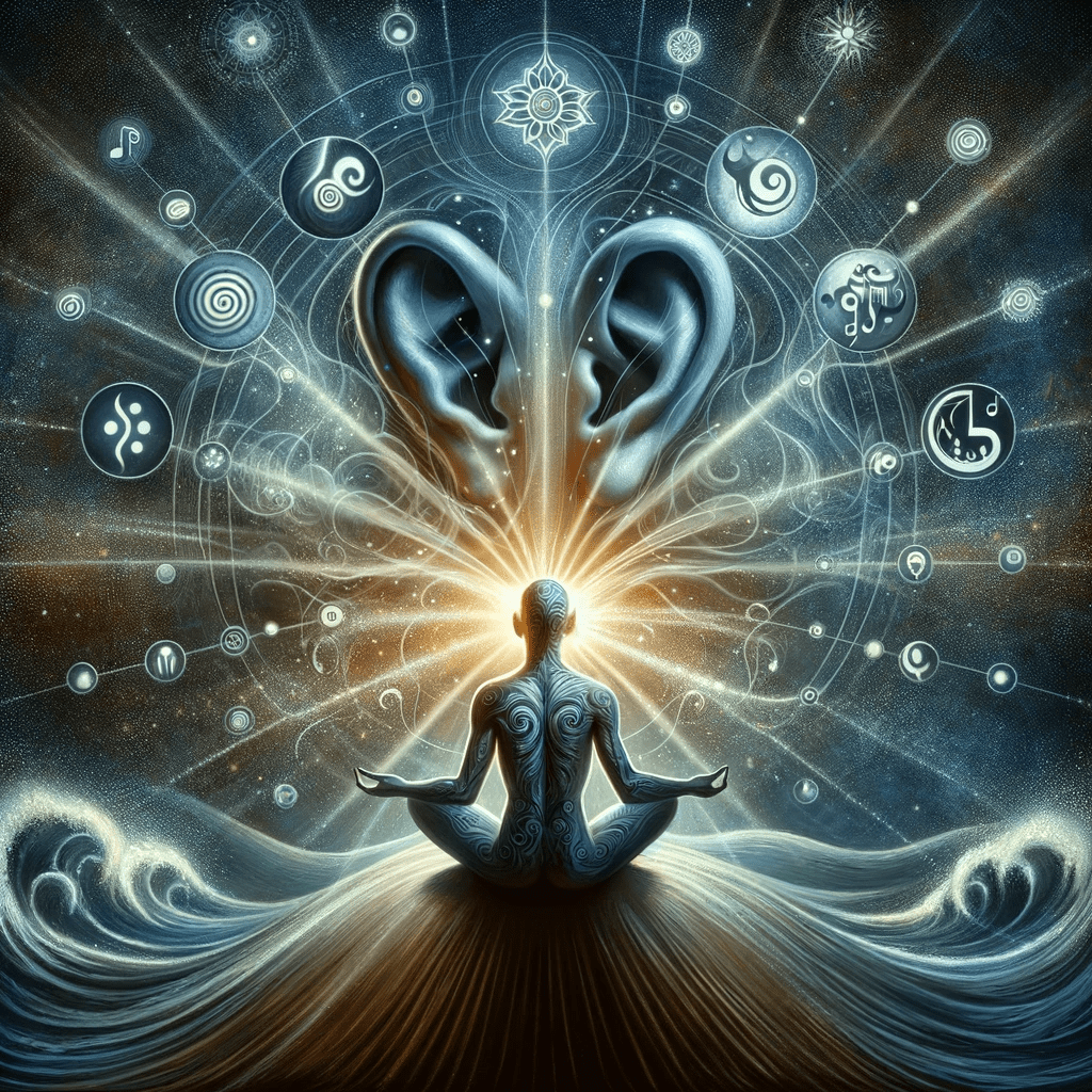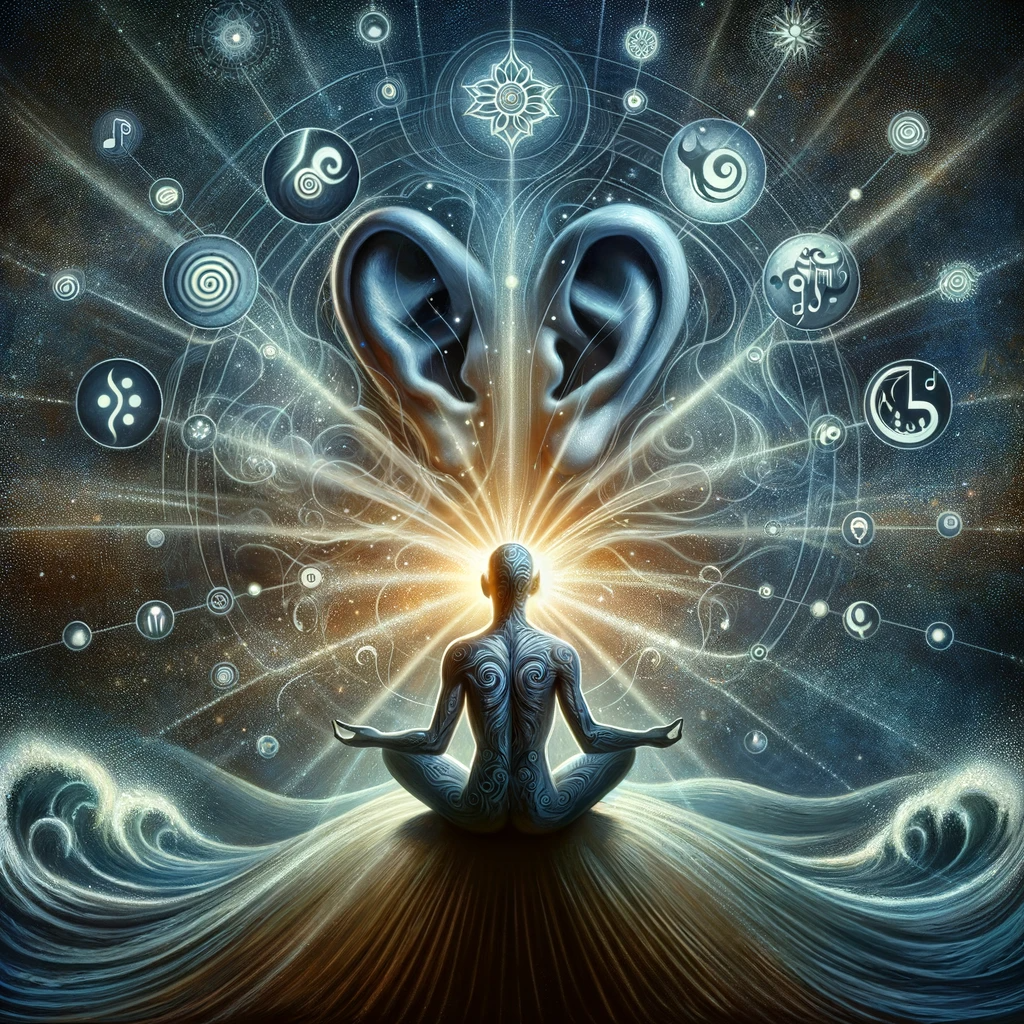 Moreover, Satatasamitabhiyukta (Ever and Constantly Strenuous), whether a young man from a noble family or a young woman who shares and teaches this Sacred Teaching to others, will possess twelve hundred fine qualities of the ear. They will hear all the sounds produced in the universe, from the depths of the great hell known as Avici to the furthest reaches of existence, inwardly and outwardly.