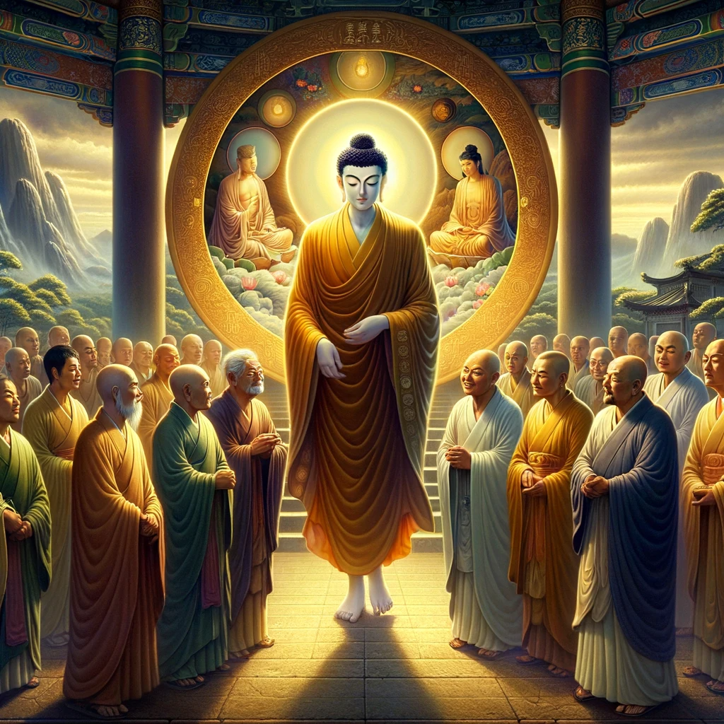 Those once trapped in what they saw—monks, nuns, lay devotees, all in awe,