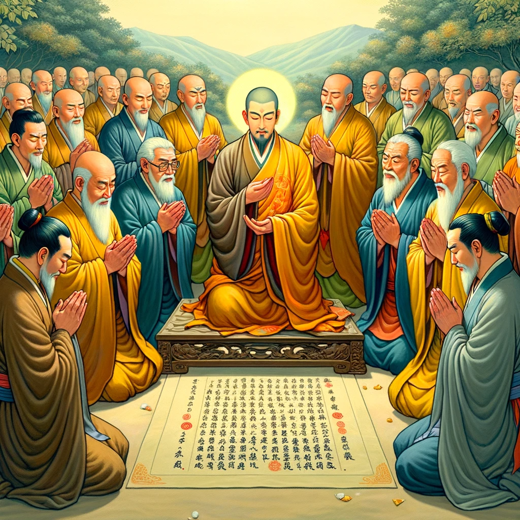 “I entrust to you again, young disciples from honorable backgrounds, this highest form of understanding and enlightenment that I have achieved through an incomprehensible span of time and countless eons. Accept it, care for it, study it, understand it, teach it, share it, and preach it to all beings.