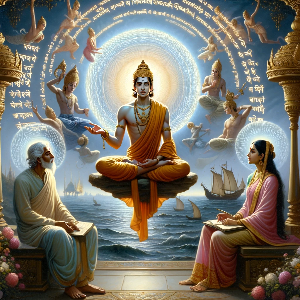 After speaking these words, Understanding-the-Essence-of-the-Star’s-Radiance, One-who-Views-All-Beings-with-Love said to his father and mother, “Even now, father and mother, the Enlightened One known as Radiance-of-the-Moon’s-Pure-Light is still alive and present in this world. By honoring him, I have obtained the spell of understanding all sounds and the profound teaching of the Lotus of the True Law, encompassing many verses. Therefore, I wish to return to him and offer my worship.”