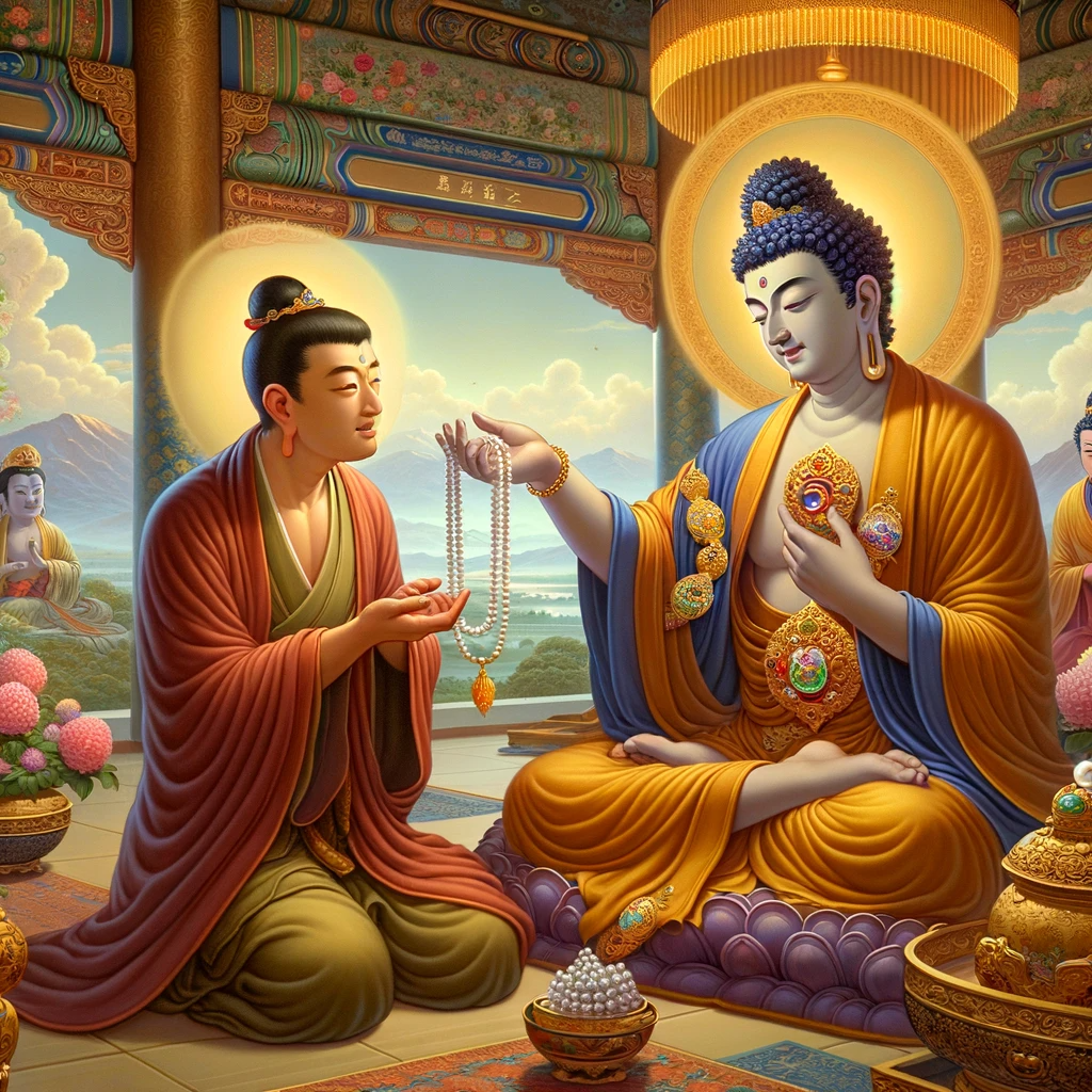 Instantly, Lord Treasure Tower provided a sign and said: “Come, young seeker of truth, to this world of existence. Manjusri, the prince of wisdom, awaits your arrival.”